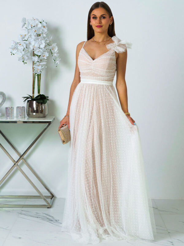 Adoria - Sukienka maxi tiulowa z koronką brudny róż na wesele