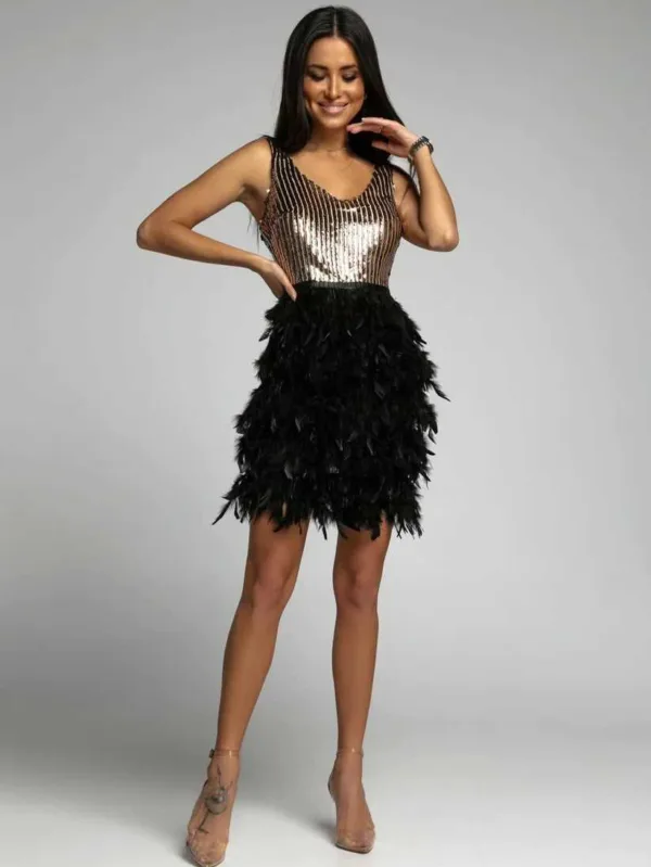 Alice - Sukienka bandażowa krótka na jedno ramię zdobiona piórkami