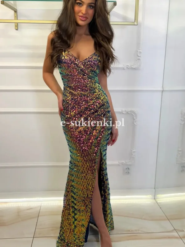 Bonita - Sukienka maxi cekinowa z rozcięciem złota na wesele