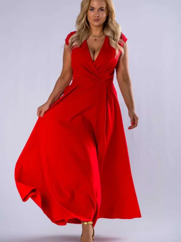 Busta - Sukienka Plus Size Maxi kopertowa amarantowa na wesele