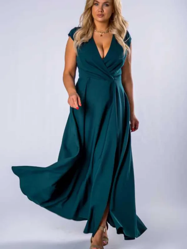 Busta - Sukienka Plus Size maxi kopertowa butelkowa zieleń